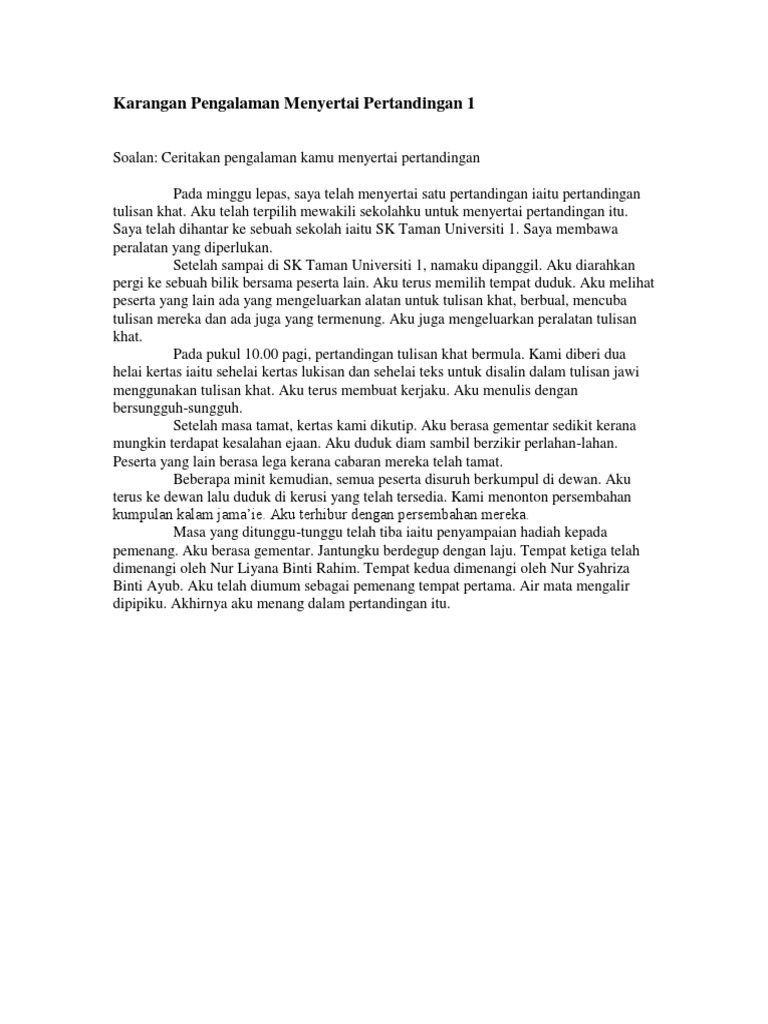 Karangan Pengalaman Menyertai Pertandingan Pdf Pdf