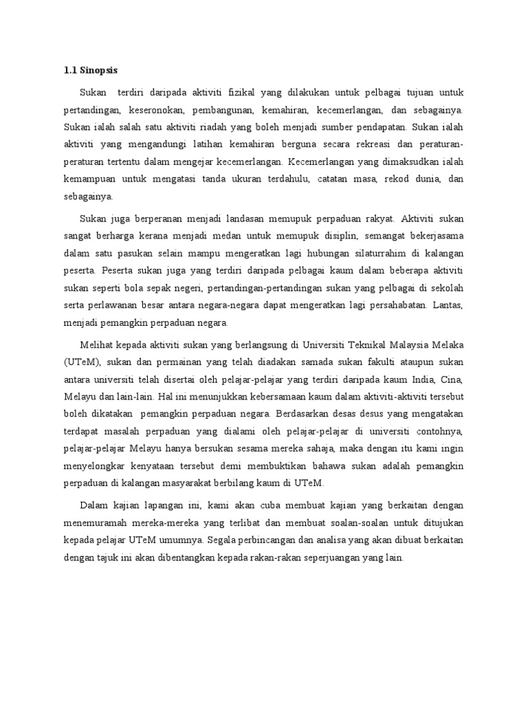 Sinopsis Sukan Sebagai Pemangkin Perpaduan Etnik Di Utem Pdf