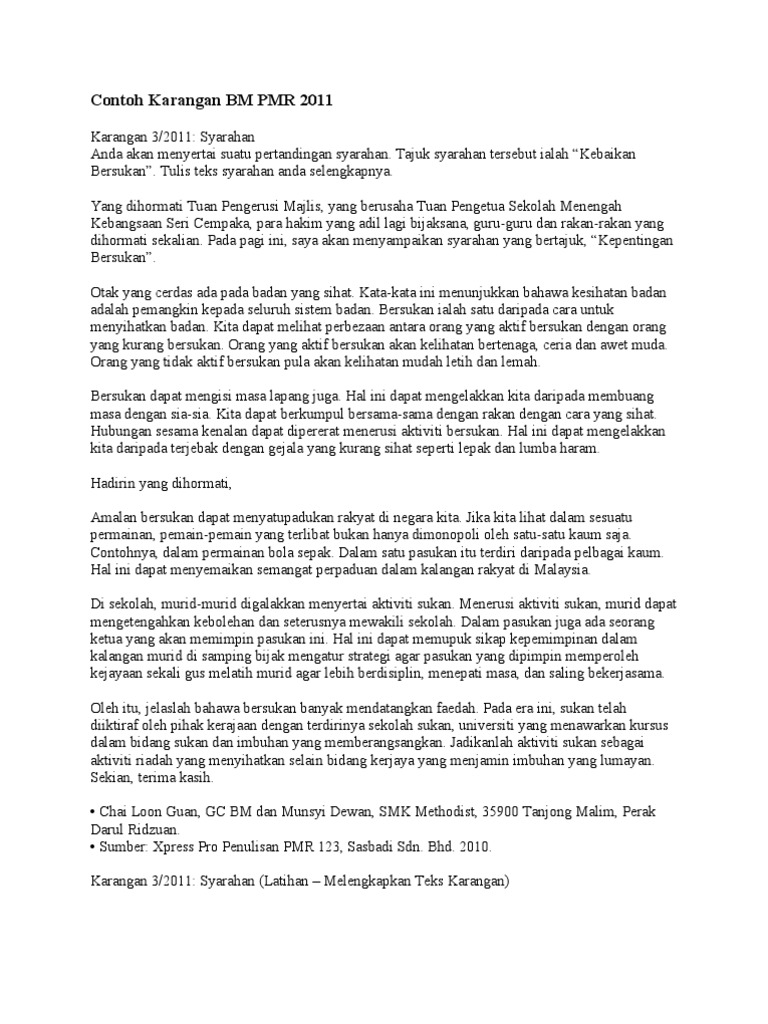 Format rencana Tajuk dan nama pengarang. Karangan spm manfaat manfaat hari sukan negara kepada pelajar. 3 memupuk semangat berpasukan.