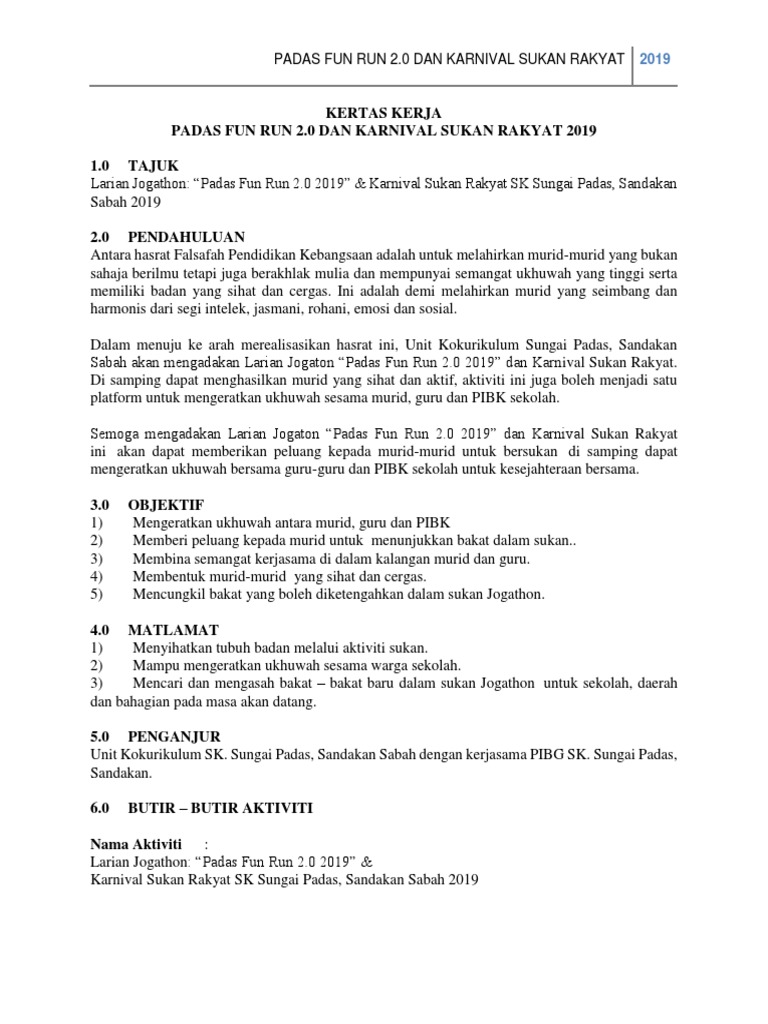 Kertas Kerja Fun Run Sukan Rakyat 2019 Pdf